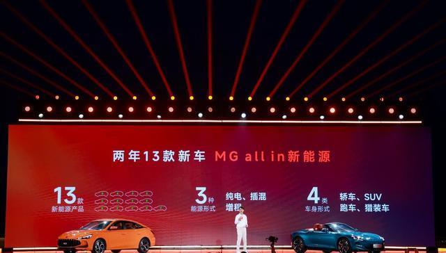 未来两年,MG将迎来产品密集投放期,计划陆续推出13款新能源产品,覆盖纯电、插混、增程三种动力形式,涵盖轿车、SUV、跑车及猎装车四大车身类型,全面满足不同消费者的需求。